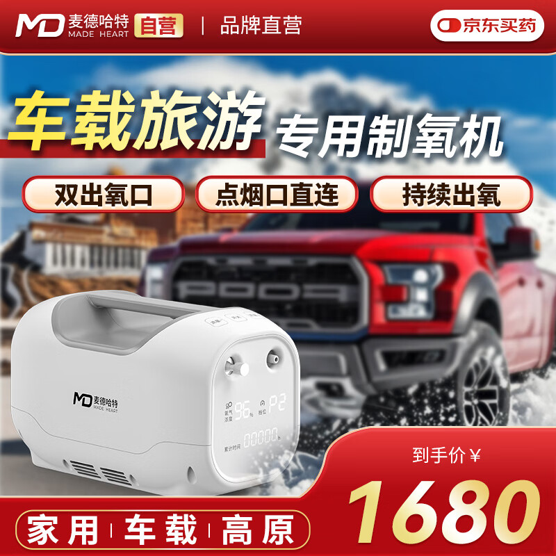 麦德哈特车载家用制氧机高原旅行小型便携双人氧气机点烟口直连多人使用