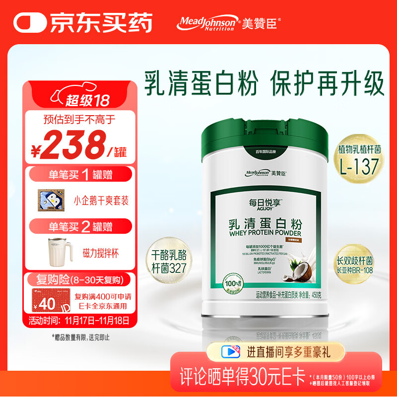 美赞臣 每日悦享 乳清蛋白粉 椰奶味 450g 中老年运动营养品 5重蛋白