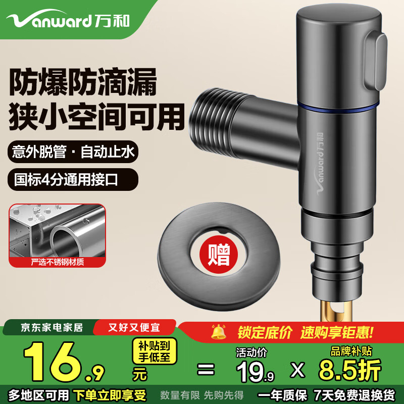 万和洗衣机专用水龙头止水阀防脱落自动止水不锈钢角阀水嘴4分通用04Q