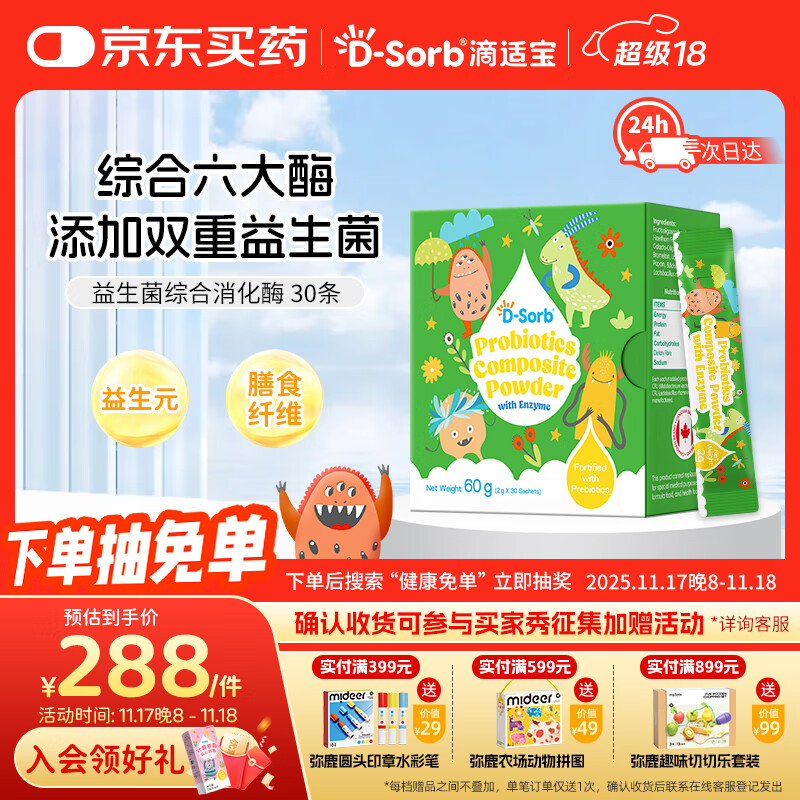 滴适宝(D-Sorb)综合消化酶益生菌酶制剂益生元蛋白酶消化酶新西兰原装进口30条