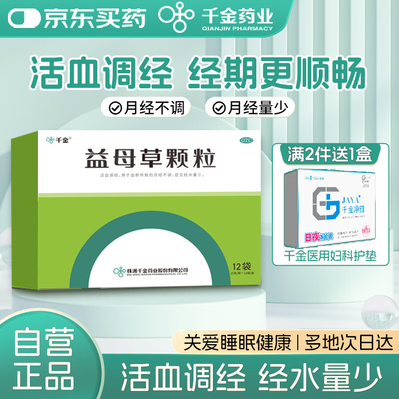 千金 益母草颗粒 15克*12袋/盒 活血调经血瘀量少月经不调催姨妈调理补气养血妇科用药 非处方药