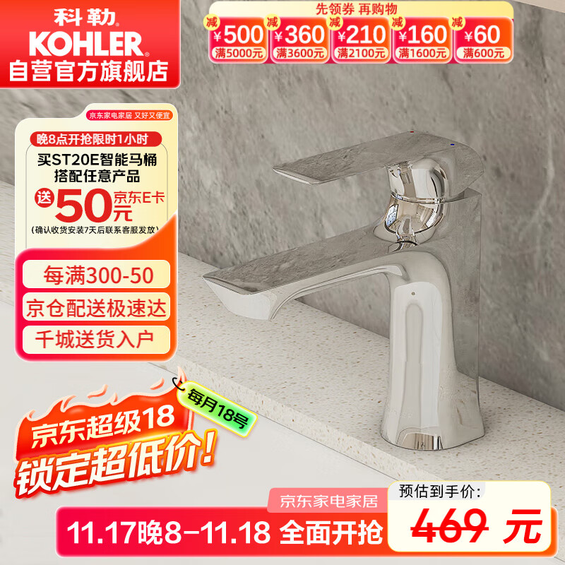 科勒(KOHLER)面盆龙头台盆单把冷热水龙头卫生间浴室双温洗脸龙头K-30055T