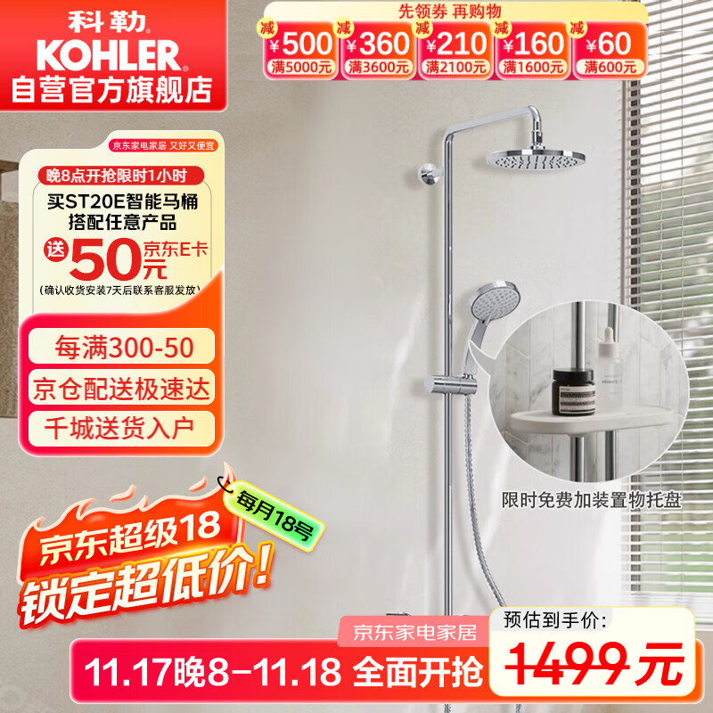科勒(KOHLER)艾瑞恒温三出水淋浴柱家用龙头淋浴花洒套餐30021T-ZV-CP