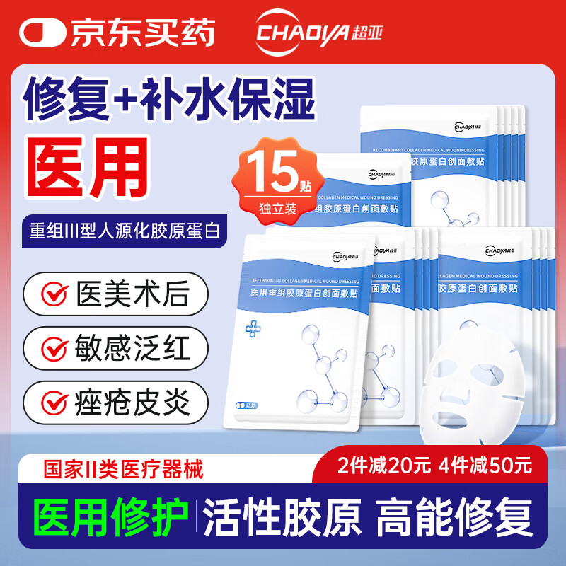 超亚医用重组胶原蛋白修复贴医美术后修复中秋节礼物冷敷贴面膜型15片