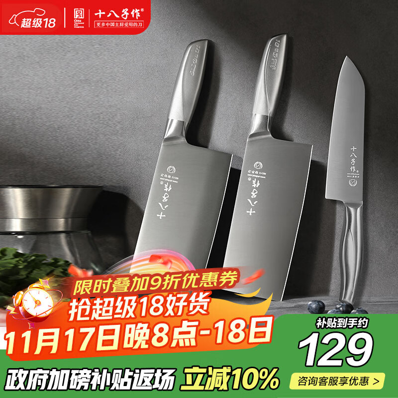 十八子作 家用菜刀组合 斩切刀切片刀多用刀 盈光刀具三件套刀 ZY1703-3#
