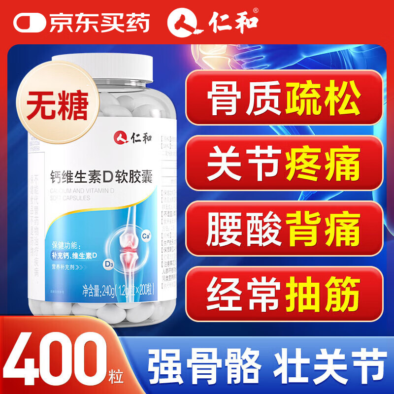 仁和钙片中老年人补钙腿抽筋腰腿疼骨质疏松维生素d50-60-70岁以上2瓶