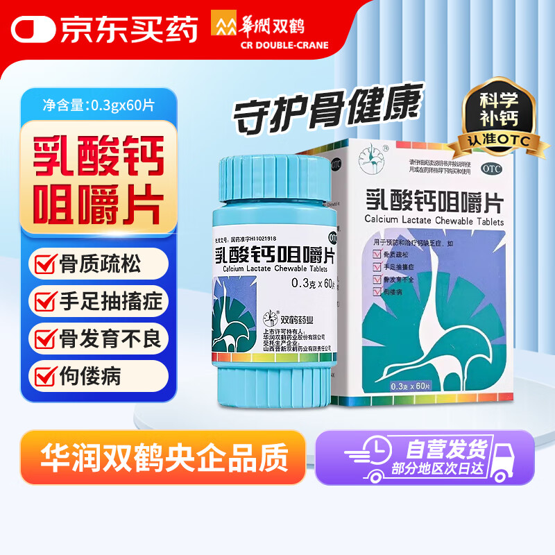 [双鹤药业] 乳酸钙咀嚼片 0.3g*60片/瓶 骨质疏松佝偻病手足抽搐症