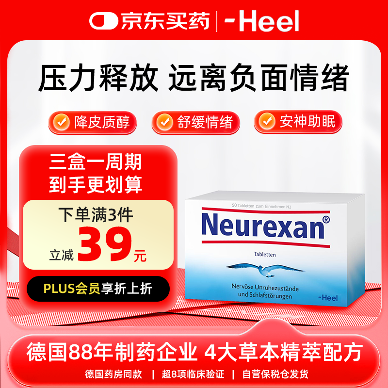 Heel希宜乐neurexan2048情绪舒缓含片50粒 降低皮质醇 舒缓压力紧张焦虑心慌 改善睡眠 抗抑郁