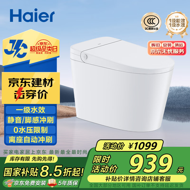 海尔(Haier)【小红花套系】无水压限制自动冲刷家用轻智能马桶M6-V30包安装