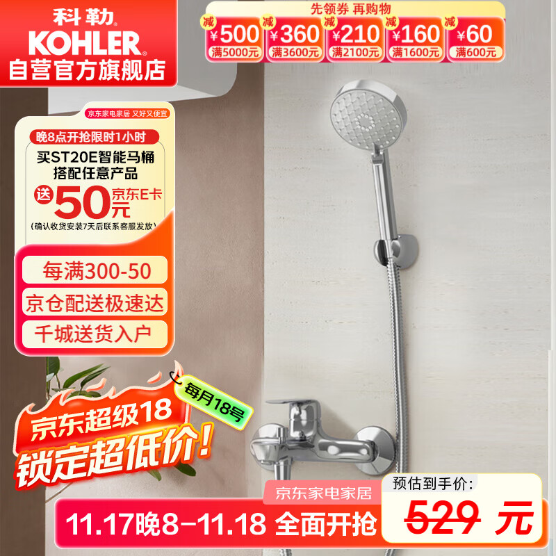科勒(KOHLER)芙芮·凌挂墙式非恒温淋浴花洒套装浴缸龙头花洒 35752T带下出水