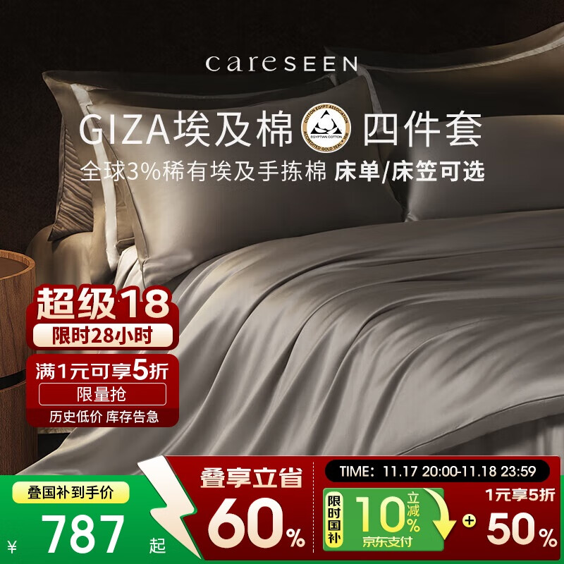 康尔馨埃及棉高级感四件套床笠款 100支纯棉床上用品 珐琅灰 1.8米床