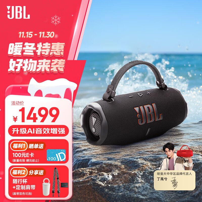 JBL CHARGE6 音乐冲击波六代 便携蓝牙音箱+低音炮 户外防水音响 AI音效增强 男士礼物 深空黑
