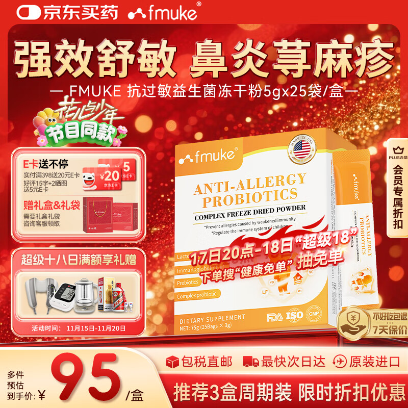 FMUKE美国进口舒鼻炎抗过敏益生菌儿童成人寻麻湿疹鼻窦炎肠胃增强免疫