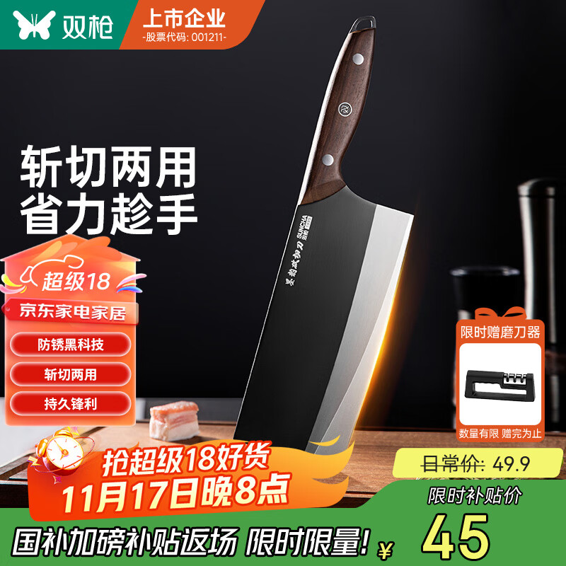 双枪不锈钢家用菜刀 黑刃防锈切片切菜切肉锋利刀具锻打斩切刀