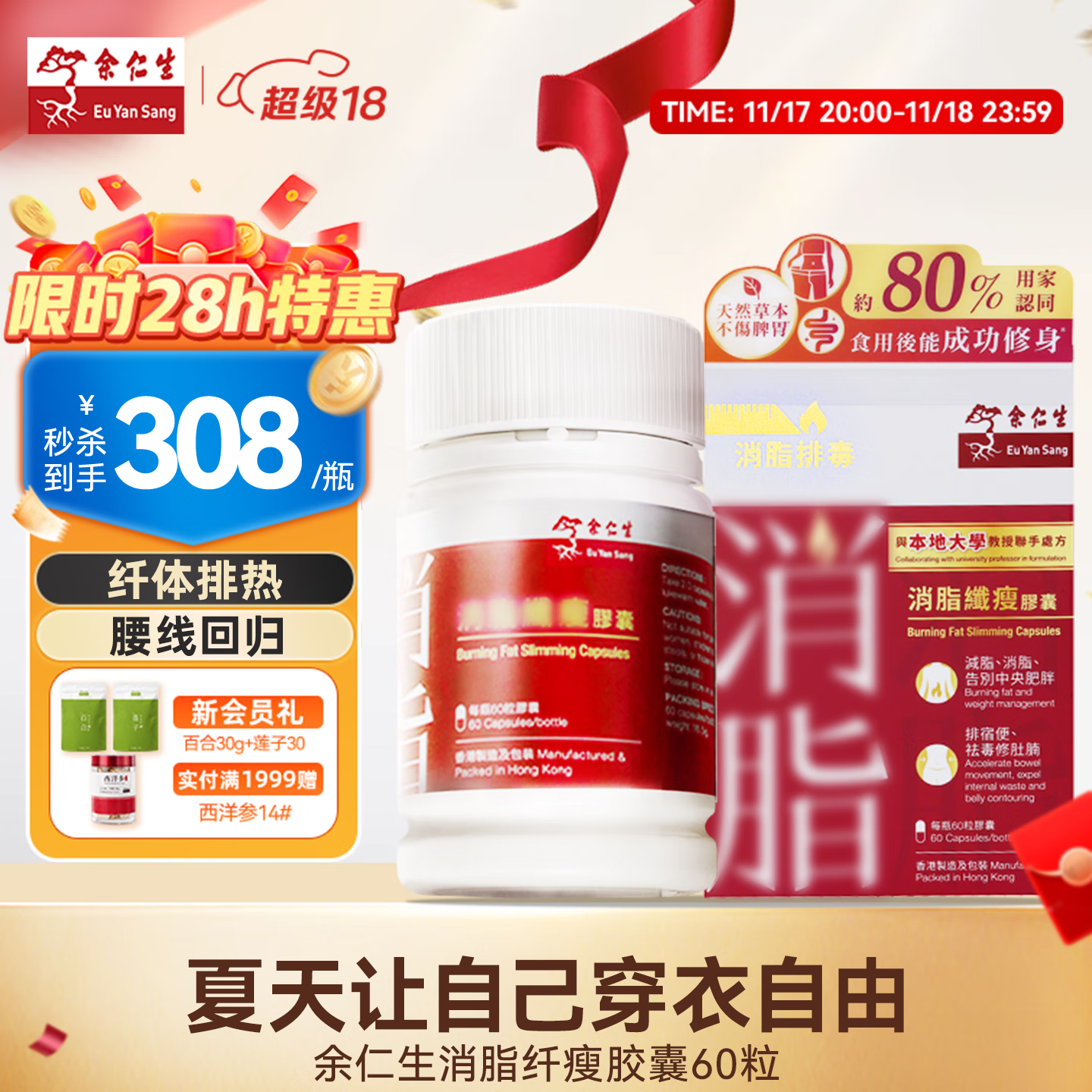 余仁生消脂纤瘦胶囊身材管理祛内热消脂润肠提升代谢香港保税