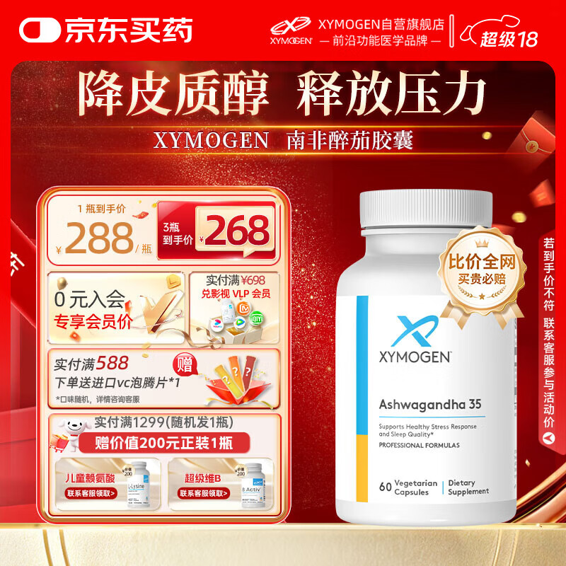 XYMOGEN健式南非醉茄35%内酯胶囊降低皮质醇缓解焦虑舒缓压力改善睡眠