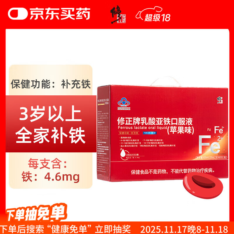 修正乳酸亚铁口服液苹果味补铁孕妇女士儿童送礼60支
