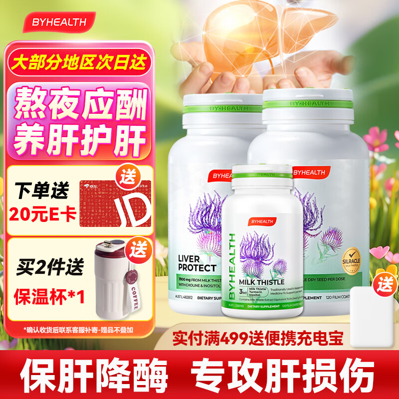 汤臣倍健(BYHEALTH)护肝片第二代升级奶蓟草水飞蓟熬夜护肝养肝净肝片脂肪肝肌醇胆碱 升级版120粒*2瓶+送40粒【加量不加价】
