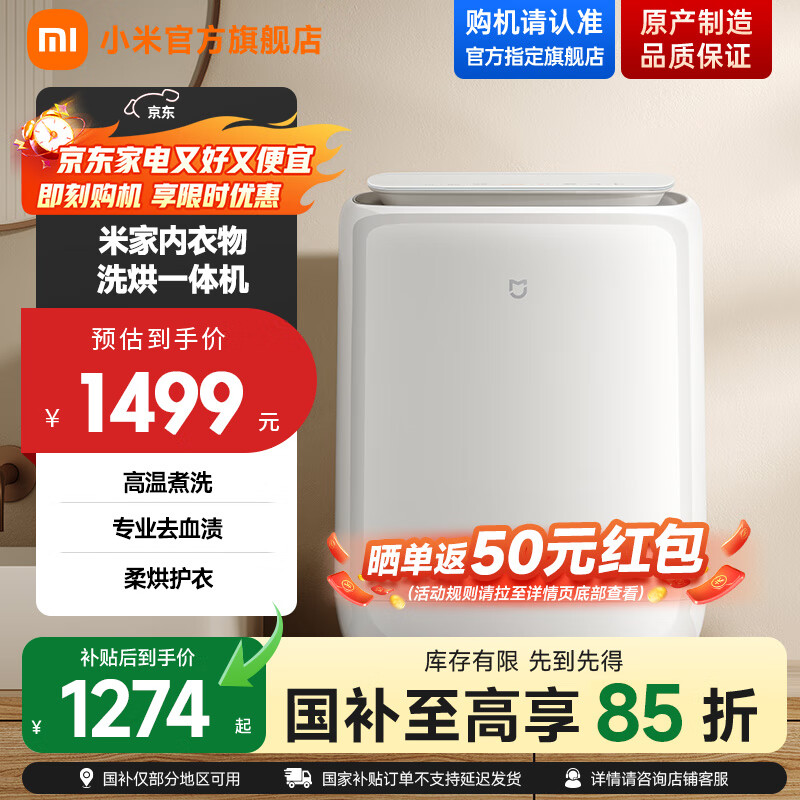 米家0.5公斤小米内衣洗烘一体婴儿洗衣机 五重净化专业去血渍 高温煮洗蒸汽除菌 低噪21种洗涤模式