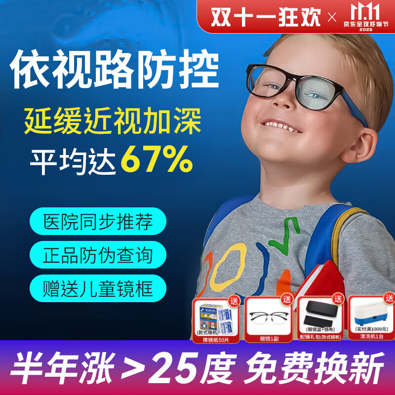 依视路(ESSILOR)星趣控眼镜片青少年中小学生离焦镜儿童减缓近视度数增长防控膜岩 依视路星趣控防控67%钻晶膜岩+送儿童框 1.591折射率特薄*2片价