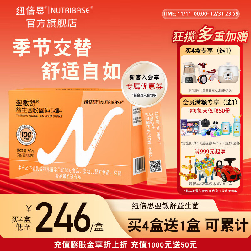 纽倍思(nutribase)翌敏舒益生菌粉冲剂 肠胃皮肤鼻子敏感 即食益生菌粉 60g(2g*30袋)