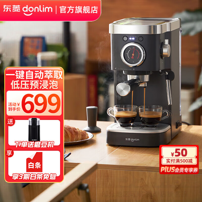 东菱(Donlim)咖啡机家用全半自动 意式浓缩蒸汽打奶泡机 新手入门款DL-6400 DL-6400钛金灰