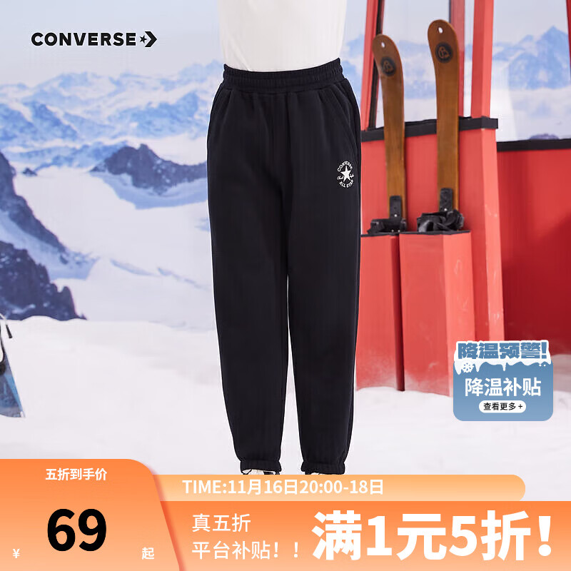 匡威(Converse)匡威童装2023秋冬男童女童加绒长裤新款裤子儿童运动裤卫裤休闲裤 正黑色 160 /69 【建议身高158-170cm】