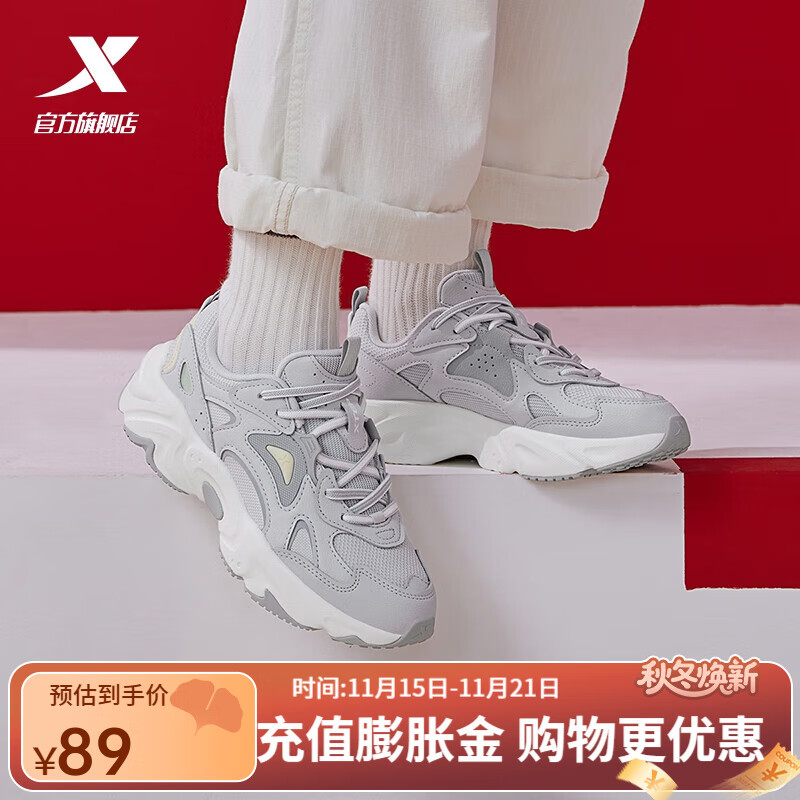 特步(XTEP)【商场同款】星迹休闲鞋女2024新款运动鞋耐磨女士老爹鞋户外鞋子 月石灰 37