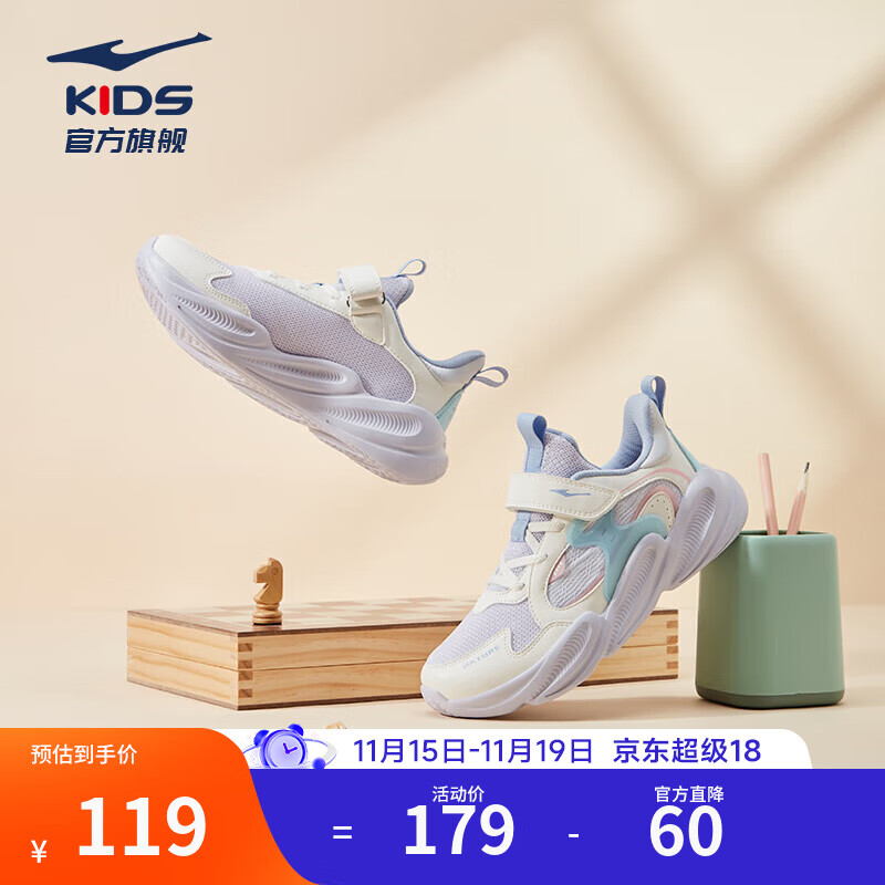 鸿星尔克儿童运动鞋男女童秋季新款网格拼接中大童学生休闲跑步鞋丨川行 霓裳紫/微晶白 -偏小1码 36