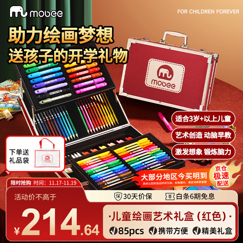 mobee画笔套装儿童绘画3-14岁蜡笔 男孩女孩生日礼物 绘画礼盒送礼推荐 礼盒红色【含绘本】+送礼品袋