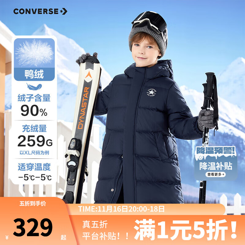 Converse匡威儿童羽绒服男女童冬季新款长款过膝中大童装极寒泡芙保暖外套 藏青蓝 160 充绒量约259g 【建议身高158-170cm】