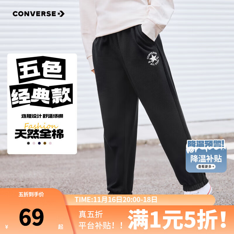 Converse匡威童装男童长裤2025秋季新款百搭中大童纯色休闲运动束脚裤子潮 正黑色 140 /60 【建议身高128-140cm】