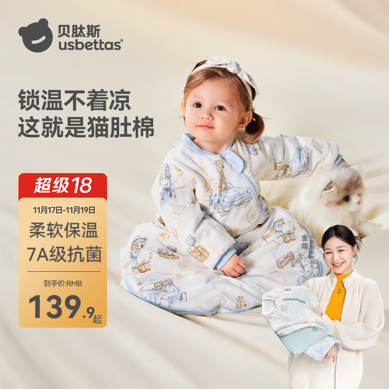 贝肽斯婴儿恒温睡袋宝宝1-3岁秋春秋儿童防踢被子保暖一体式防惊跳睡袋 猫肚棉x保暖【春秋双层 室温20-26度】格兰城邦 M码 (身高62-85cm建议9月-2岁)