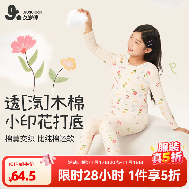 久岁伴【薄暖】儿童保暖内衣套装女童秋衣秋裤莫代尔棉秋冬校服打底神器 浅粉 140