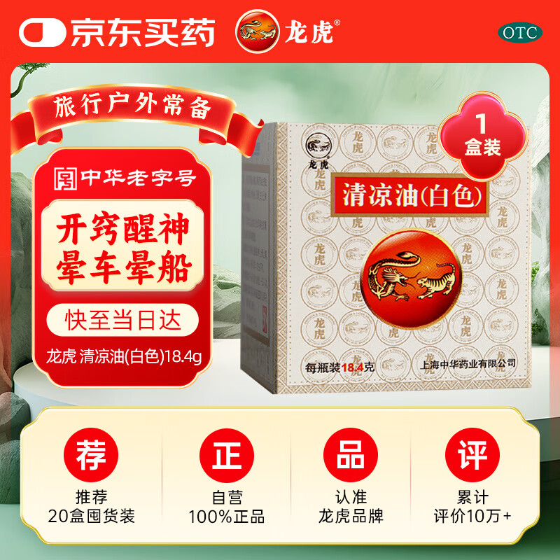 龙虎 清凉油(白色)18.4g/盒 清凉散热 醒脑提神 止痒止痛用于感冒头痛中暑晕车蚊虫叮咬