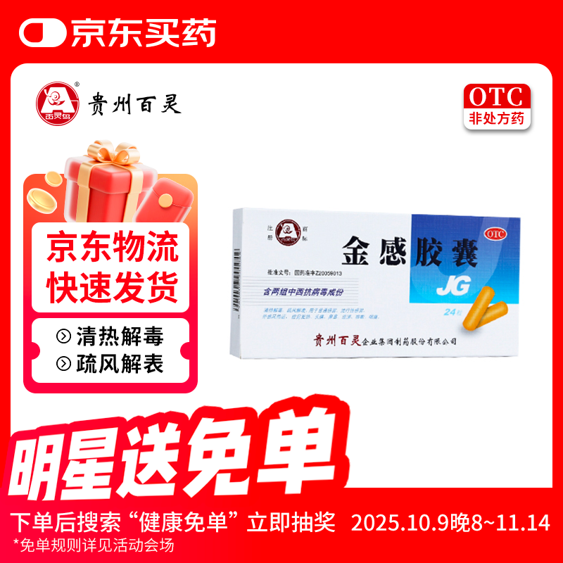 百灵鸟 贵州百灵 金感胶囊 0.45g*24粒 清热解毒 发热头痛 疏风解表 感冒流行性感冒 流感 嗓子疼