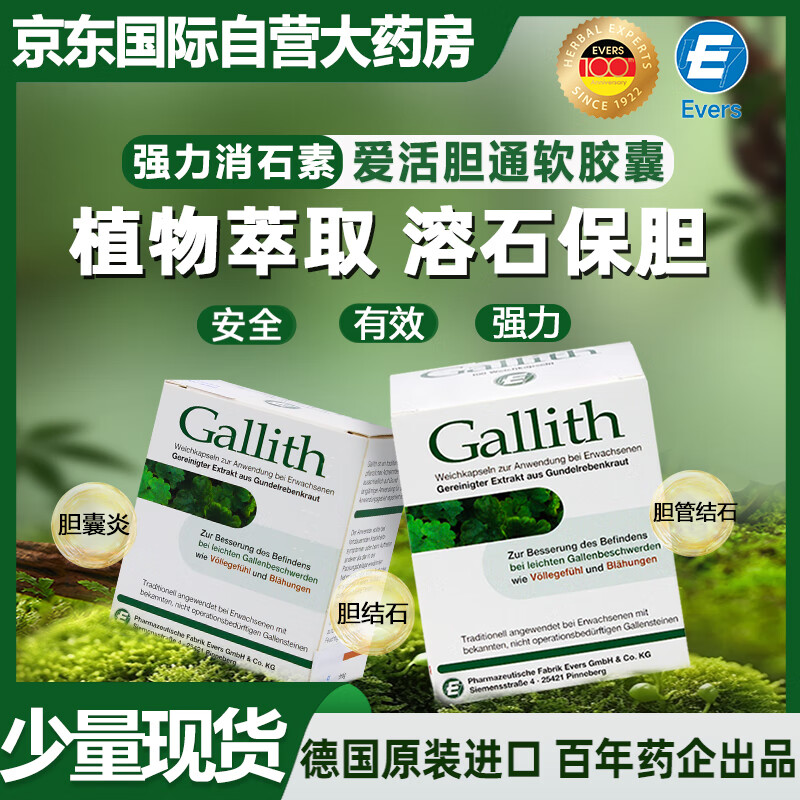 爱活胆通软胶囊德国原装进口Gallith胶囊100粒 胆结石专用药德国强力消石素 胆管结石引起的胆囊炎 利胆丸