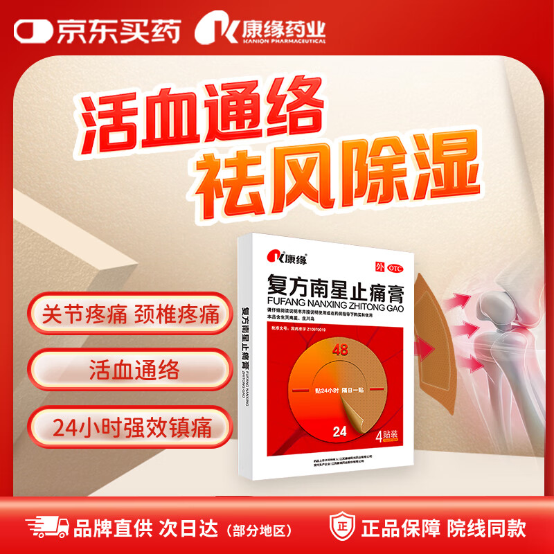 康缘 复方南星止痛膏4贴 止痛膏药 活血化瘀 祛风湿 关节疼痛 颈椎风湿 活动不利 肌肉扭伤