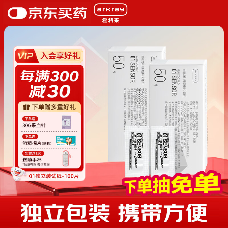爱科来 京都血糖仪家用血糖试纸GT-1970糖尿病检测试纸 100片独立试纸