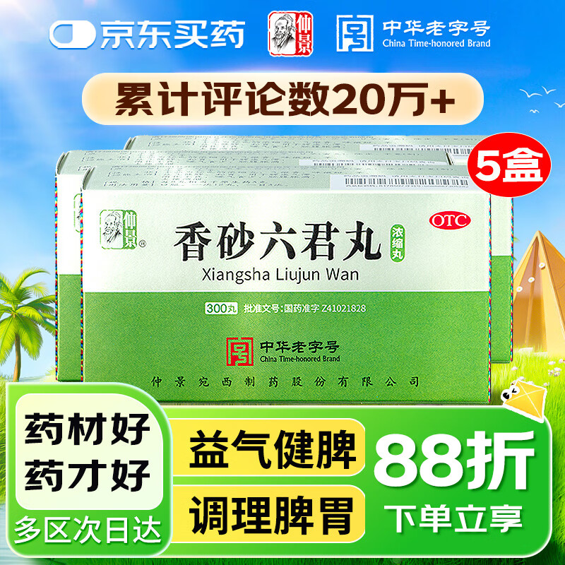 仲景 【5盒】香砂六君丸300丸六君子丸 益气健脾和胃 脾虚气滞消化不良 脘腹胀满大便溏泄汤 肠胃消化用药