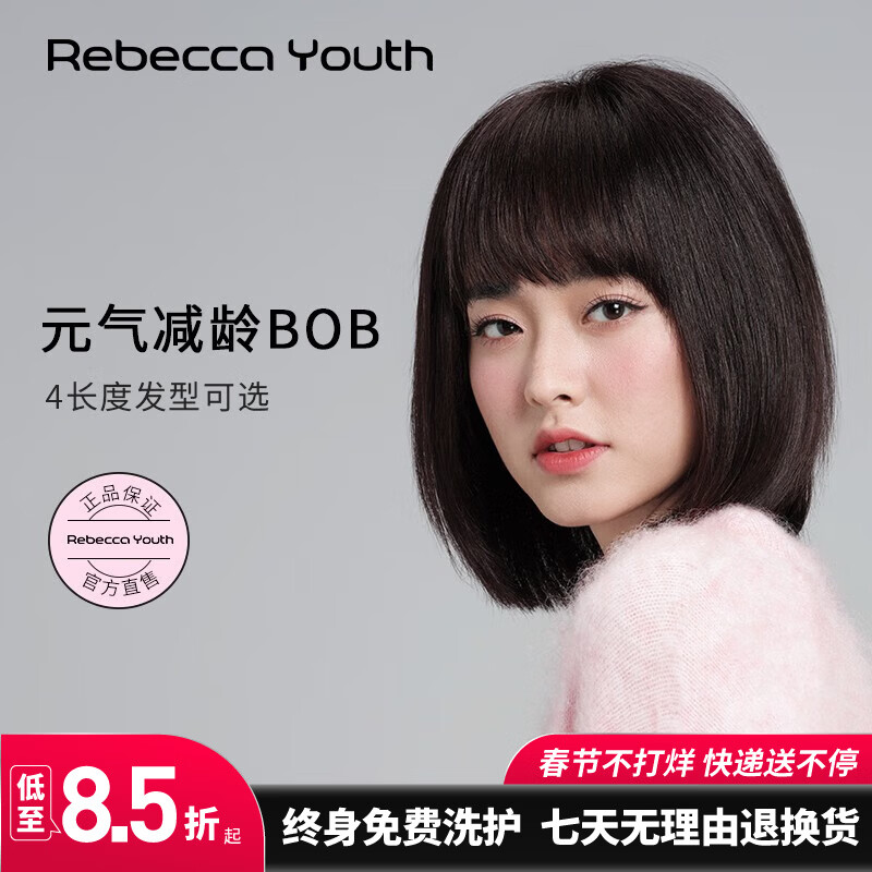 瑞贝卡(Rebecca)假发女100%真人发丝空气刘海减龄BOBO锁骨发初恋系全头套 经典BoB 自然色 短发 24cm 全手织