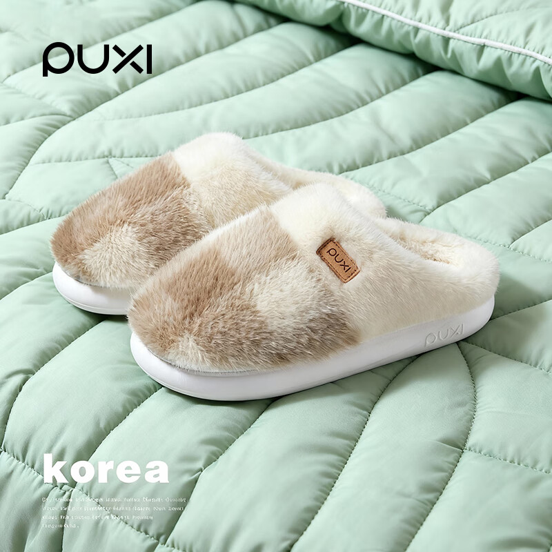 朴西居家云绒棉拖鞋女士秋冬季情侣家居室内地板防滑软底加绒毛拖鞋男 奶咖色 36-37