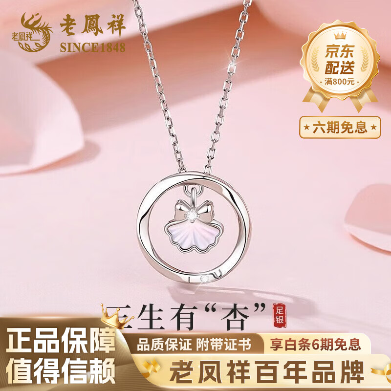 老凤祥999银三生有杏女项链轻奢小众生日生日生日礼物女士送女朋友老婆 三生有杏项链 【品牌礼盒】