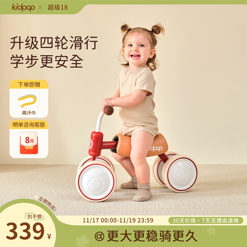 kidpop儿童平衡车学步车1-3岁宝宝滑行车防侧翻婴儿玩具车 周岁礼物 【75-110cm】升级四轮滑行 复古红