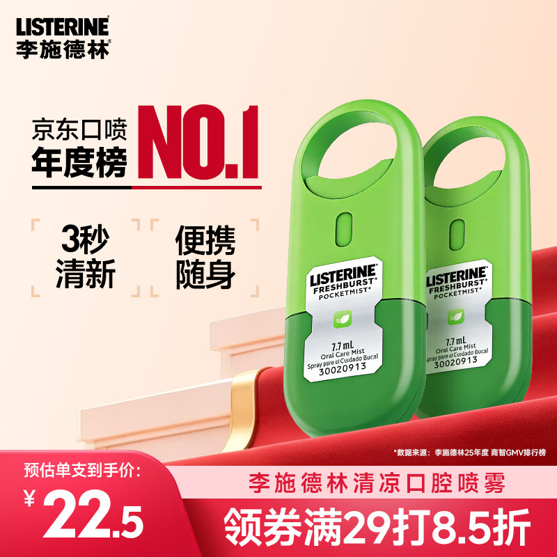 李施德林漱口水口喷便携口腔缓解咽喉不适清新剂喷雾缓解口臭 7.7ml*2支