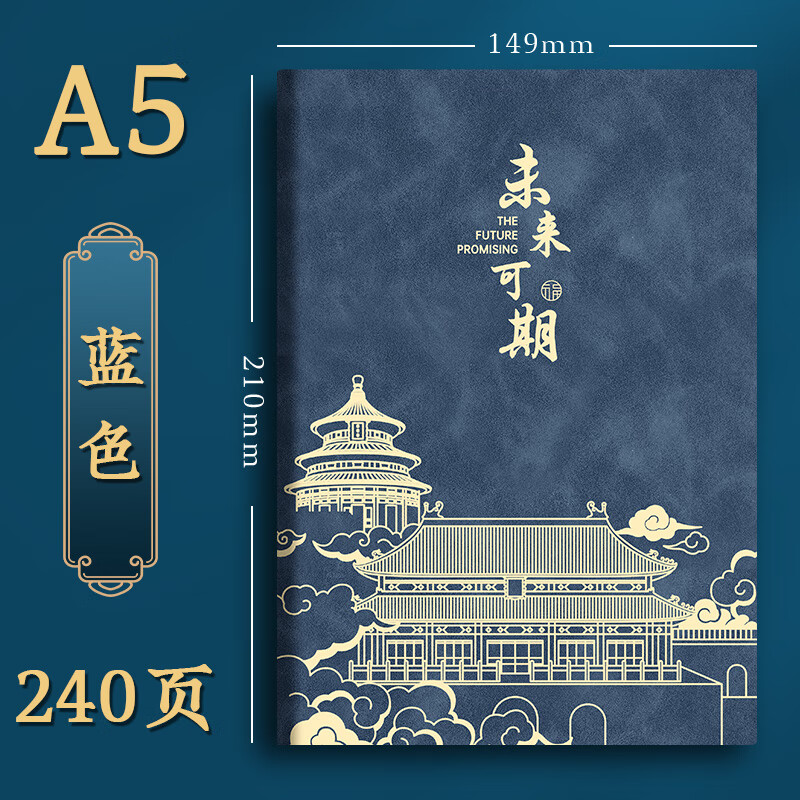 淼许 A4笔记本本子416页国潮搭扣记事本故宫文创日记本超厚皮面本商务会议记录本支持定制企业LOGO 【无搭扣】A5蓝色-240页