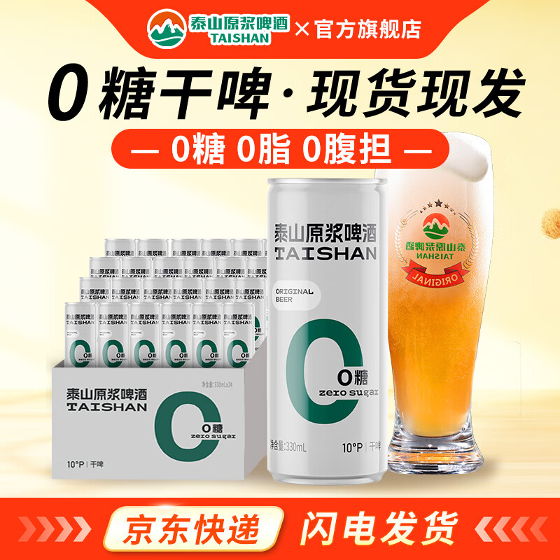 泰山原浆啤酒升级版0糖干啤10度全麦芽酿造原浆泰山啤酒整箱24听 泰山原浆0糖干啤 330mL 24瓶 整箱装