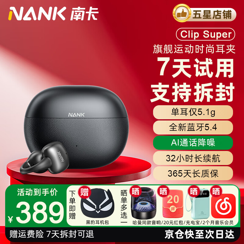 南卡【超绝音质】Clip Super耳夹式蓝牙耳机骨传导无线开放式挂耳不入耳运动跑步骑行健身校园礼物设备 【千元音质】檀木黑+精美礼品多选一