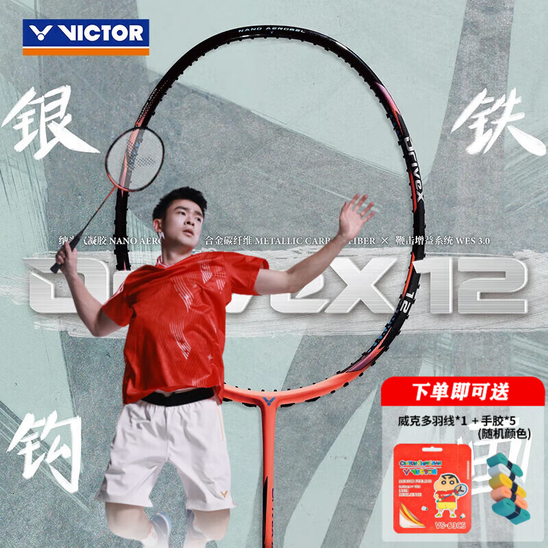 威克多(VICTOR)胜利驭9X台湾专业羽毛球拍碳纤维DX驭10合金碳纤维中管比赛球拍 DX-12 O鲑红色 4U 【空拍发货】