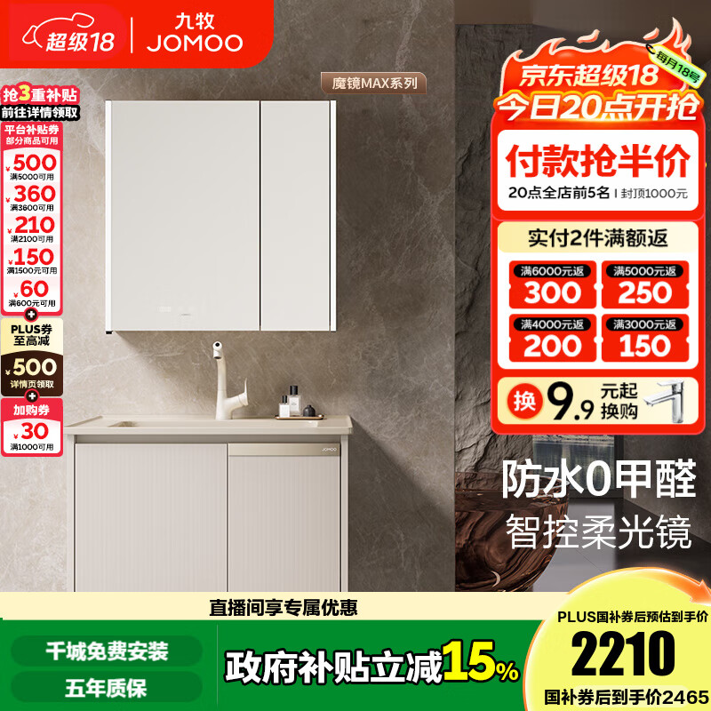 九牧(JOMOO)浴室柜陶瓷一体盆洗手盆柜组合铝合金柜卫生间洗漱台洗手台A2769 【魔镜MAX】暮云白-无龙头80cm